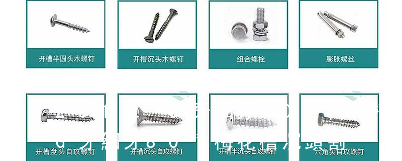 (鐵板牙自攻螺絲) B-2: Plastic Tapping Screw. (塑膠用,自攻螺絲) C: Wooden Screw : 木工螺絲 D: Drywall Screw :水泥墻螺絲 E: Self Drilling Screws鉆尾螺絲(不銹鋼鉆尾螺絲,復合材料鉆尾螺絲) F:膨脹螺絲,四片膨脹螺絲又